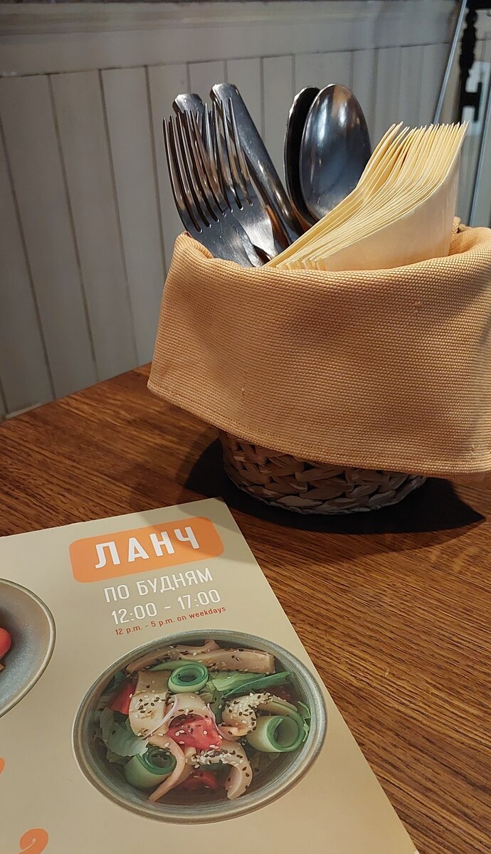 Можно ли недорого и вкусно перекусить в самом центре Санкт-Петербурга? Да, конечно можно! Прямо на Невском проспекте, находится один из ресторанов итальянской кухни Марчеллис, в который мы и направились, отведать бизнес ланч. Можно выбрать одно блюдо за 330 руб, два блюда за 440 руб, или три блюда за 550 руб. Ну и в добавок, за ещё 170 руб. Можно получить бокал вина, Напиток, десерт и французскую булку. Мы с подругой решили гульнуть по максимуму и взяли большой ланч с добавкой). На мой взгляд, ланч меню довольно разнообразное и есть из чего выбрать. Мы заказали салат, горячее и пиццу. Порция салата очень крошечная. Кусочки курицы довольно крупные и хочется их разрезать ножом, а за счёт подачи в глубокой тарелке, это не очень удобно. Сама грудка нежная и с приятным, не химозным, копчёным вкусом. Совсем капля рукколы, несколько долек груши и относительно много булгура. В целом, салат мне понравился. Компот больше напомнил не сладкий морс. Из фруктов смогла разобрать только грейпфрут