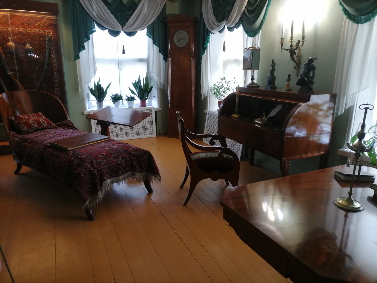 Буквально несколько дней назад я поделилась с вами нашей прогулкой в парке усадьбы Приютино. Об этом можно прочитать здесь: Прогулка в усадьбе под Петербургом, где гуляли Пушкин, Брюлловы, Крылов.... Но в этот раз в сам музей мы не пошли и наслаждались только великолепным парком. В музее мы были в октябре 2021 года. К сожалению, из 23 домов усадьбы восстановлен (и то это сильно сказано) только один. Там и располагается экспозиция, посвященная первому хозяину первому директору Публичной библиотеки, президенту Академии художеств А.Н. Оленину. Я предлагаю немного полюбоваться интерьерами хозяйского дома: Комната молодого человека 1820 года, дворянина Комната молодой девушки начала 19 века. В комнате представлены личные вещи Варвары и Анны, дочерей хозяина. В Анну был влюблен сам Пушкин, который часто приезжал в гости в усадьбу. Кабинет хозяина. Гостиная-галерея. Воссоздан интерьер усадебной гостиной. Великолепное помещение нежно персикового цвета. И еще немного внутренней красоты (гости