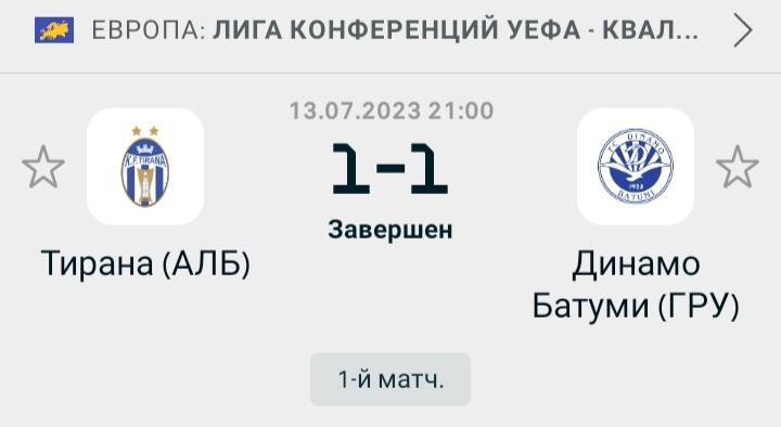 Всем привет друзья. На разборе очередной матч первого раунда квалификации Лиги конференций. Албанская Тирана на своём поле принимала Динамо Батуми из Грузии. Перед этим поединком фаворитом считалась команда хозяев. Поскольку чемпионат Албании по уровню игры во много раз превосходит чемпионат Грузии. И Тирана, и Динамо Батуми перед очной встречей проводили товарищеские матчи. Видно, что оба клуба постепенно готовиться к старту сезона в своих чемпионатах. Лига Грузии начинает новый сезон 5 августа, а вот в Албании календарь нового чемпионата пока неизвестен. Поэтому Тирана так же как и Динамо Батуми вынуждена проводить товарищеские матчи и играть в лиге конференций готовясь к выступлениям в новом сезоне своего чемпионата. Во вчерашнем поединке третьего по престижности Еврокубка в составе клуба из Албании с первых минут на поле отсутствовал основной центральный полузащитник. К счастью он попал в заявку на игру. Забегая вперёд скажу, что он выйдет на поле во втором тайме. Тирана на протяже