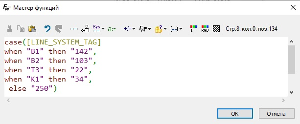 (можно применять для MS Трубопроводы, Водоснабжение и Канализация, Отопление и Вентиляция) Для данного дополнения необходимо пройти в Настройки MS , далее Объекты-Трубопровод-Труба В перечне параметров находим Цвет и кликаем на кнопку «…» чтобы открыть Мастер функций. Воспользуемся оператором case для подбора необходимых комбинаций, подставим к нужным значениям параметра обозначения системы значения цвета. Получаем: При отрисовке нового трубопровода будет принят желаемый цвет. Обращение к атрибутам осевой при простановке выносок к проекции трубопровода. Например, вам нужно вынести обозначение системы трубопровода на чертеже. Сделать эт