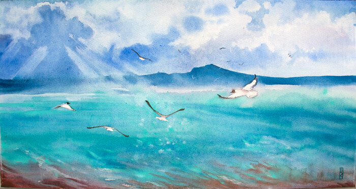 Всех приветствую! Недавно я вернулась из небольшого путешествия по Хакасии, откуда привезла массу, вдохновения и красивых фотографий. Наконец-то увидела вживую настоящую степь, которая производит не меньше впечатления, чем горы. И, конечно, озера, там они просто фантастические. Одно из них – озеро Белё, чей прекрасный вид я попробовала запечатлеть. Оно похоже на место из воображения - цвета такие, будто кто-то все щедро раскрасил акварелью. Из-за очень переменчивой погоды пейзаж постоянно обновляется, палитра сменяет одну за другой. И вот ты стоишь на одном и том же месте, а мимо тебя проносится мир, полный звенящих красок и первозданной красоты. Думаю, в своих акварелях я еще не раз вернусь к образам этого удивительного края. Полёт над озером Белё», 56/30 см. Пост автора AnnaKiriakina. Комментарии