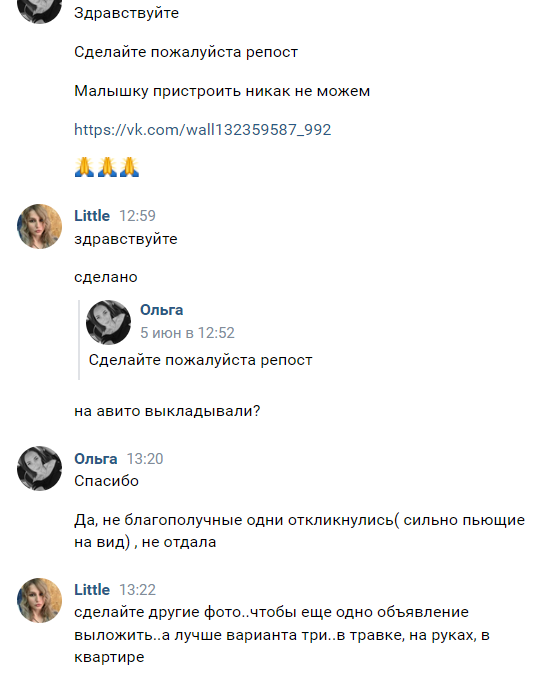 Я кстати ни разу не спрашивала Ольгу, почему она решила мне написать. Но скорее всего догадываюсь по какой причине, могу конечно ошибаться…но скорее всего я мыслю правильно. Помните щенков выброшенных как мусор два раза? Которых нам удалось пристроить за три дня. Я думаю именно в этой истории дело.