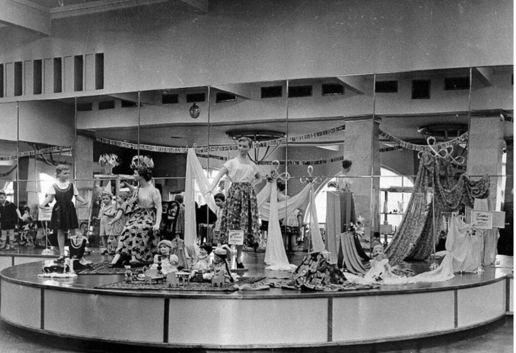 В 55-м году прошлого столетия вышла кинолента под названием «За витриной универмага». На экранах демонстрировали абсолютно невероятные вещи не только для граждан Союза, но и для всех работников торговли: вежливые и обходительные продавцы, адекватное общение персонала с покупателями, при этом первые находились не за прилавком, как все привыкли, «островная» торговля, которую мы наблюдаем сегодня в ТЦ, когда посередине аллеи установлены стенды с товаром, например, украшениями или часами.