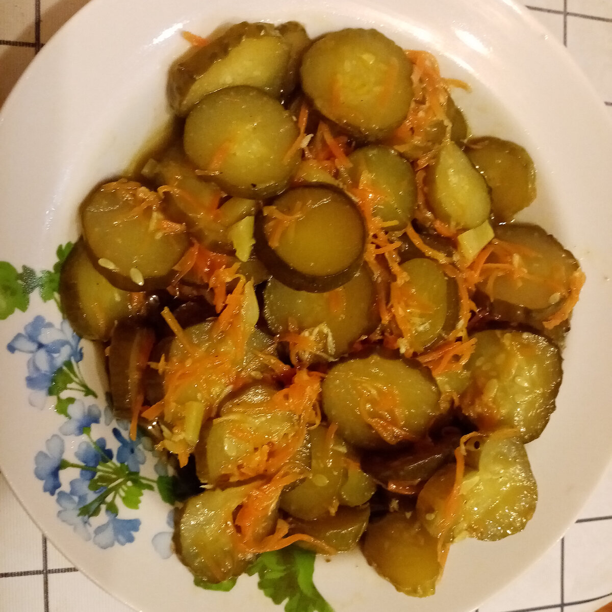 1. Огурцы моем и вместе с кожицей нарезаем ровными кружочками толщиной до 5 мм. Нарезанные овощи помещаем в широкую кастрюлю , пересыпаем солью и сахаром, аккуратно перемешиваем. Оставляем в холодном месте на пару часов до выделения сока.