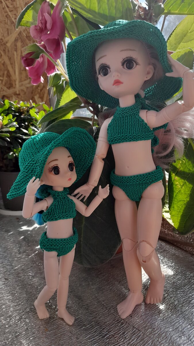 Поэтому для своих куколок связала купальники с панамами. Вязала по МК Одежда куклам с Мариной.
