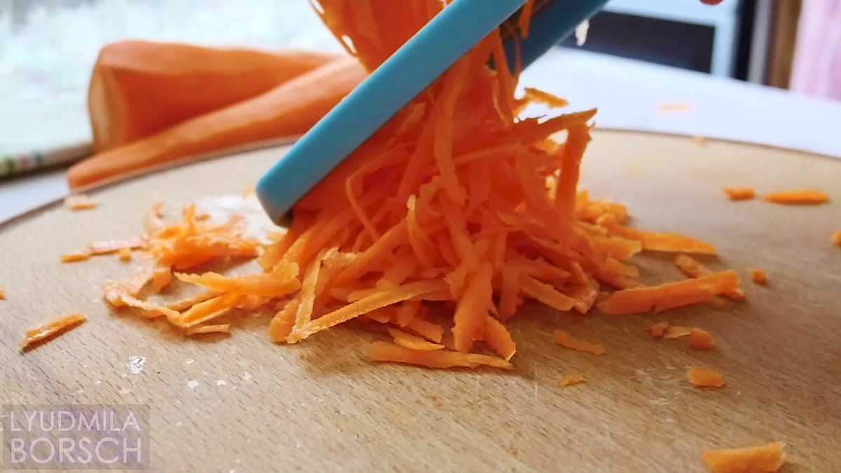 Ищете что-то новое для разнообразия вашего стола? Эти консервированные кабачки в томате по-корейски станут настоящей находкой для вас. Представьте себе сочные кусочки молодых кабачков, которые просто тают во рту, оставляя за собой незабываемый вкус. Эти консервированные молодые кабачки – настоящий кулинарный шедевр, который позволит вам насладиться превосходным вкусом и сохранить его для долгих зимних вечеров. Дайте себе возможность попробовать эту вкуснятину. Для начала свежую морковь натрем на крупной терке. Отправим ее в глубокую кастрюлю, где и будем варить наш салат 100г чеснока измельчим. Я это делаю с помощью ножа, а не чеснокодавки, так как кусочки будут очень кстати в салате. Отправляем к моркови Далее берем острый перец и очищаем от семечек и нарезаем на вот такие кусочки. Всыпаем в кастрюлю Сюда же всыпаем две столовые ложки соли и 150 грамм сахара Также вольем по 200 грамм подсолнечного масла и уксуса. Еще добавим пол литровую банку томатного сока, у меня домашний Хорошень