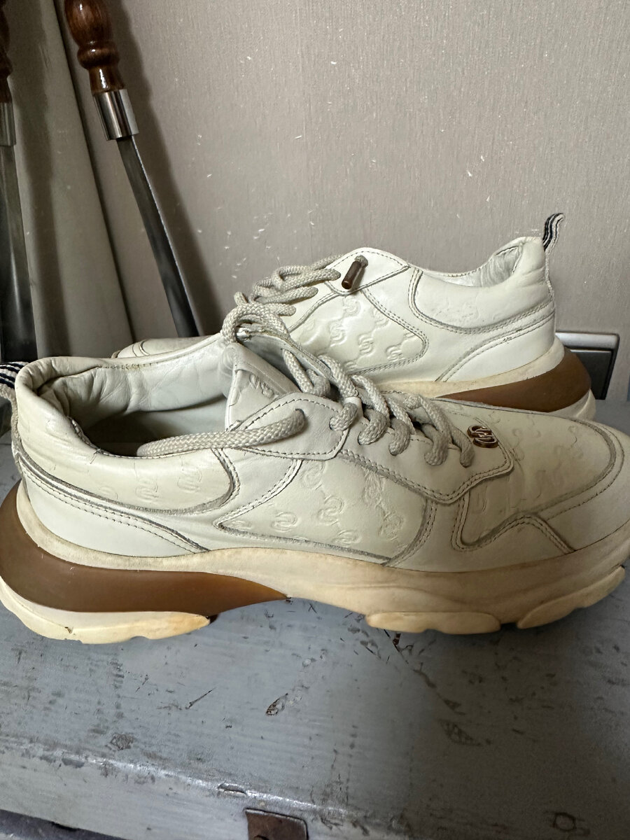 Пару месяцев назад я писала о том, что собрала пакет обуви в химчистку: Если увеличить фото - можно понять степень загрянения обуви))) И вот, наконец, я забрала готовое! Смотрим, что получилось! пара 1. Кроссовки Uterque осень-зима, носила три сезона. Были темные полосы на внутренних поверхностях подошвы, на правой пятке и на носках, которые не отчисчались в домашних условиях. А это результат: не неровный цвет внимания не обращайте, это освещение и тень от телефона.Перефотографировать не буду, так как уже сложила их до зимы: Вторая пара - кроссовки Michael Kors, носила несколько сезонов неактивно, но попала под дождь и по ним пошли рыжие разводы - в предыдущей статье на фото очень хорошо видно Вот результат: все отчищено: третья пара - зимние тимбы сына. Честно, после зимы они были в таком состоянии, что изначально я хотела их перекрасить Результат меня очень порадовал! Конечно, обувь не превратилась в новую. Но она стала намного презентабельнее и ее не стыдно будет носить Аю но