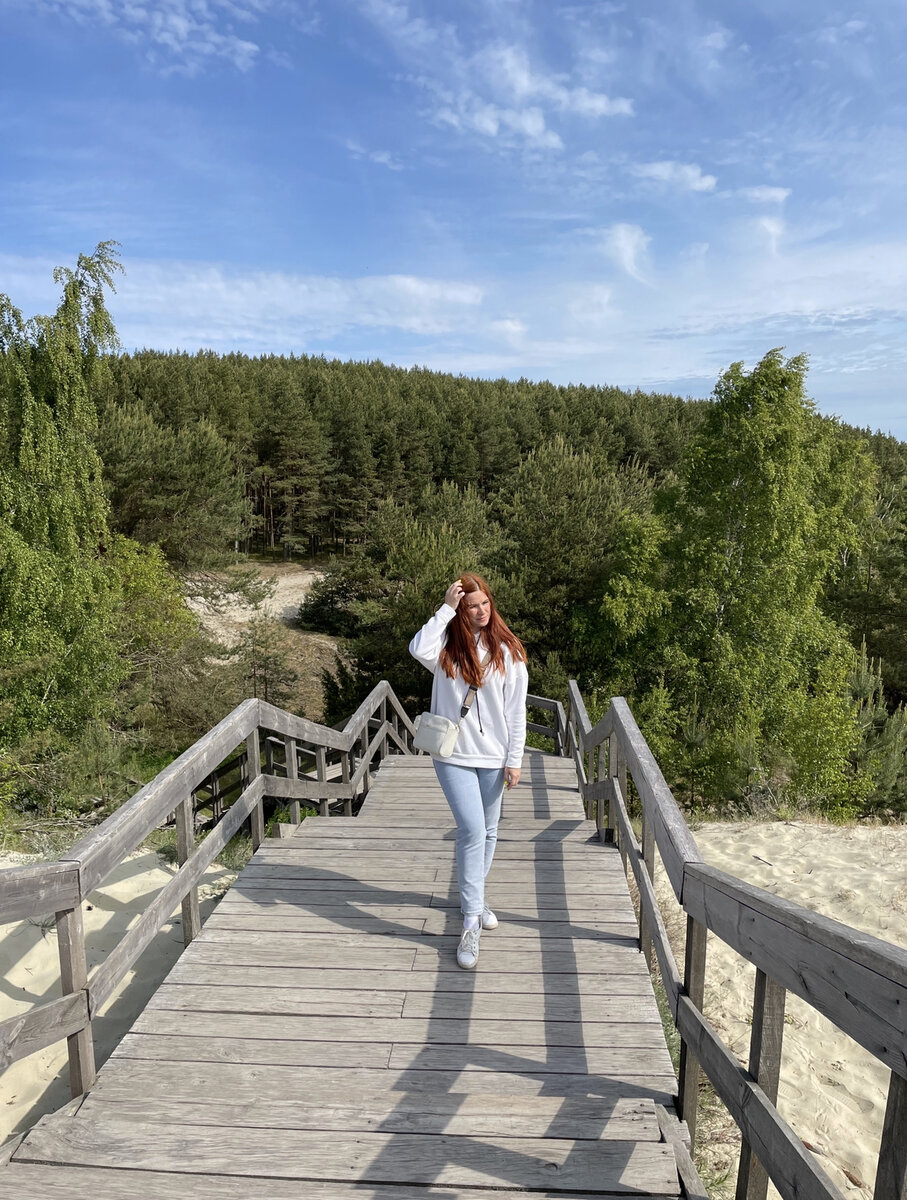 Уверена, что практически каждый при посещении Калининградской области (а особенно впервые) планирует прогулку по Куршской косе. С этой статьи я хочу начать рассказ о маршруте, который проехали мы ~ за 6 часов. Сразу скажу, что по возможности лучше запланировать посещение косы на первую половину дня, причем как можно раньше! Так у вас будет возможность насладиться всеми красотами практически в одиночестве, без толп туристов. Мы прибыли на первую точку маршрута около 9 утра и были на нем одни! Приблизительно к 11 приезжают туристические автобусы. А так как эти маршруты открыты круглосуточно, то можно начинать их осмотр даже раньше чем мы. Вход на каждую из экотроп Куршской косы абсолютно бесплатный! Кроме того, есть туалеты, ларьки с едой и напитками, сувенирные лавки. Итак, первой остановкой на нашем маршруте стала ВЫСОТА ЭФА. Это не дюна. Так называется самая высокая точка дюны Ореховой- 62 м над уровнем моря. Одна из самых высоких дюн в Европе! Высота получила имя «Эфа» в честь д