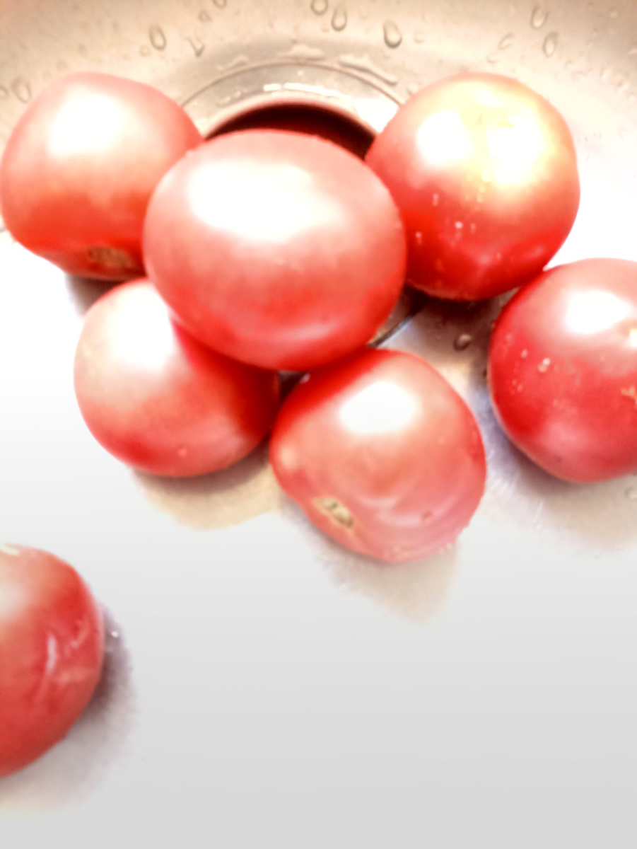Срочно обморочно поехали с соседкой на ярмарку, ценник, впрочем, не очень радует. Помидоры от ста рублей и выше. Но один фермер порадовал, мелкий помидор, но спелости отличной и целенький весь, по пятьдесят рублей. Хапнули так, что еле до машины дотянули.