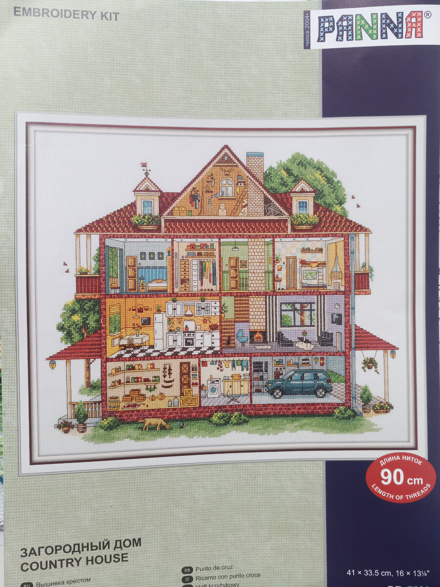 Хочу показать наборчики которые я совсем недавно приобрела. Все наборы покупались в июне и июле на Wildberries. Так часто бывает у вышивальщиц. Вдруг просыпается хомяк и ему срочно нужно пополнить запасы). При этом хомяк должен победить жабу, которая протестует против покупок наборов обоими лапами и грозится задушить. Мой хомяк победил в этот раз, конечно старалась выбирать все по минимальной цене, по наставлению жабы. Первый набор который я приобрела был "Загородный дом" от Panna. Я давно хотела вышить какой-нибудь домик, все рассматривала разные варианты. Также мне нравились наборы в которых разрез какого-то объекта с кучей деталей. А еще есть примета, что если вышить дом, то это к улучшению жилищных условий. Об этом кстати указано даже на самом наборе. Вобще конечно по примете должна быть видна дорожка к дому, она должна быть ухоженной, а еще из трубы дома должен идти дым. Очень яркие и красивые цвета. Ниток кажется маловато, но судить об этом конечно рано, я даже не смотрела во ск