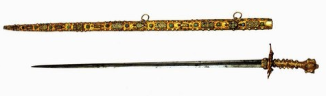 По традиции турецкое оружие ассоциируется в первую очередь с саблями. Причем саблями, если можно так выразиться, самыми вот прям САБЛЯМИ - почти что сферическими в вакууме. То есть - с квинтэсссенцией самой идеи этого оружия, в наивысшем ее проявлении. Но тем не менее турецкие воины располагали и колющими мечами, в том числе - приоритетно колющими, такими, как кончары. К сожалению, о них известно гораздо меньше, во всяком случае, в русском сегменте интернета. Из статьи в статью гуляет вот этот турецкий кончар, опубликованный, если не ошибаюсь, у Аствацатурян, в ее книге о турецком оружии. Но, к сожалению, это чистой воды парадно-церемониальное оружие. Фото боевых кончаров найти гораздо труднее. Один из них - вот, причем про него известно, что это оружие самого Мехмеда Второго, XV век. Но это фото, к сожалению, малоинформативное, и представление дает только о его длине. ТТХ этого оружия я вообще пока нигде не нашел. Но добрый знакомый, недавно побывавший в том музее, прислал мне более и
