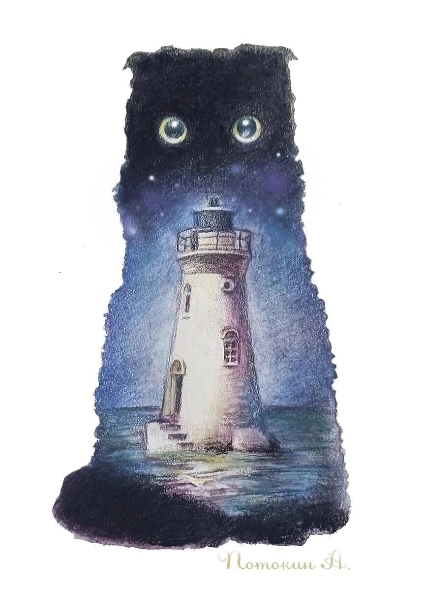 А тот, что примерещился коту, пах чем-то до конца неуловимым. Болтал на непонятном языке. Внутри кота шумело и гудело. А тот, который жил на маяке, упрямо делал маленькое дело.