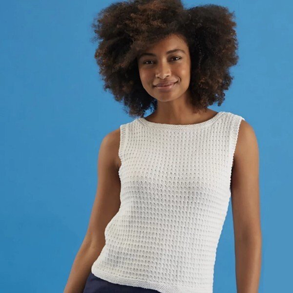 Уточним потребность в пряже и инструментах: вам потребуется пряжа Paintbox Yarns Cotton Mix DK (50% хлопок, 50% акрил, 245 м/100 г), прямые и круговые спицы № 4, 2 держателя петель.