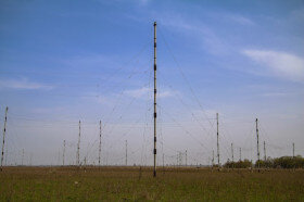 Тип объекта: Военное Месторасположение: Алматинская область,Казахстан Охраняемость: средняя Состояние: хорошее Очень большое поле, на котором расположены давно неработающие мачты так называемого диполя Надененко — антенны, выполненной из 6—8 параллельных проводов, расположенных по образующим цилиндра, и представляющая собой симметричный вибратор. Предложен советским учёным С. И. Надененко в 1935. Применяется в качестве приёмно-передающей антенны преимущественно в диапазонах метровых и декаметровых волн для связи, вещания и др. Н. д. обладает низким волновым сопротивлением (250—400 ом), что обеспечивает слабую зависимость входного сопротивления от длины волны и хорошее согласование диполя с питающим его фидером. Достаточно устаревшая техника связи, применявшаяся в армии СССР в 60-е и 70-е годы, в 80-е постепенно вытесненная более компактными решениями и потому заброшенная. В центре поля находится полуживая войсковая часть связистов. В двухэтажной бывшей казарме живут военнослужащие и их