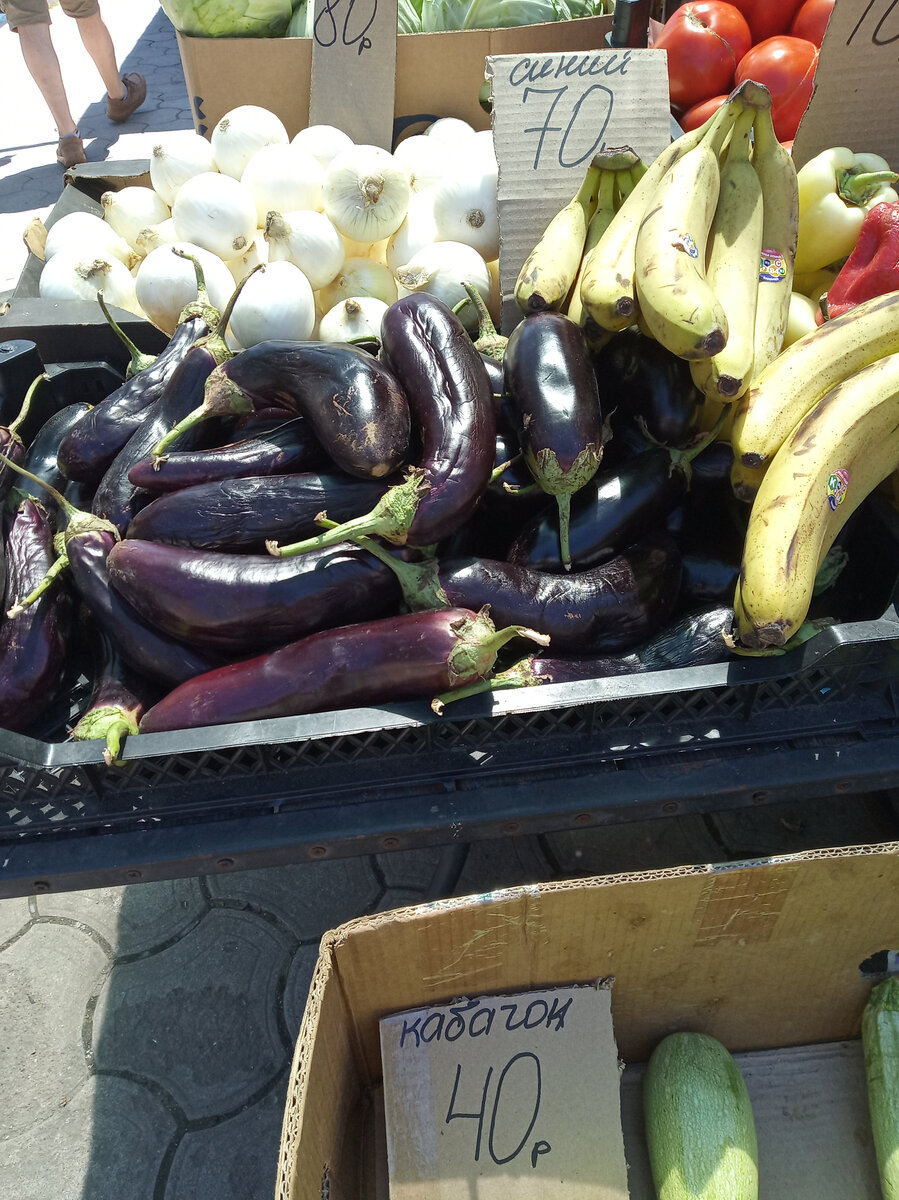 Интересно наблюдать, как меняется ситуация в Донецке на примере обычного рынка. В 2015-том продавцов вдруг стало столько, что они занимали места между двумя рядами. Тогда все решили, что проще всего зарабатывать, торгуя овощами и фруктами. Но предложение в тот момент превысило спрос. Скоропортящийся товар быстро начинал гнить и пришлось срочно сбрасывать цену, выкладывая его в отдельные ящики. Теряя прибыль, торговцы во всем винили супермаркеты, утверждая, что в Донецке все привыкли там сами выбирать. Потому сейчас покупателям сразу предлагают взять пакет и самостоятельно его наполнить. Но продавцов на рынке сейчас совсем немного. Точнее, остались самые стойкие. По этой причине с фруктами у нас сейчас не очень, но овощи купить можно без проблем. В том числе и у тех, кто только сейчас занял места. Не знаю, откуда эти бойкие женщины, но ценники у них с местным названием "синие" вместо баклажан. А в Донецке всегда говорили "синенькие". Напомню в этой связи забавную историю, о которой ране