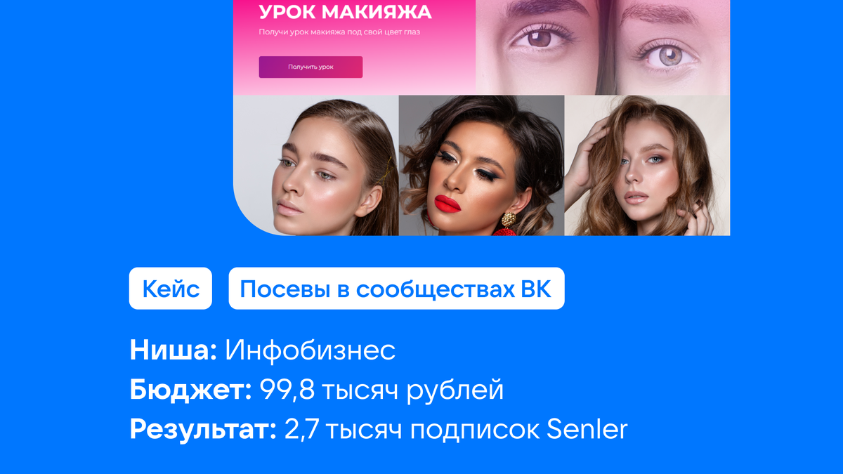 Итак, самый «мясной» кейс от Ц — 2700 подписок на онлайн-курсы для инста-блогера в ВК.