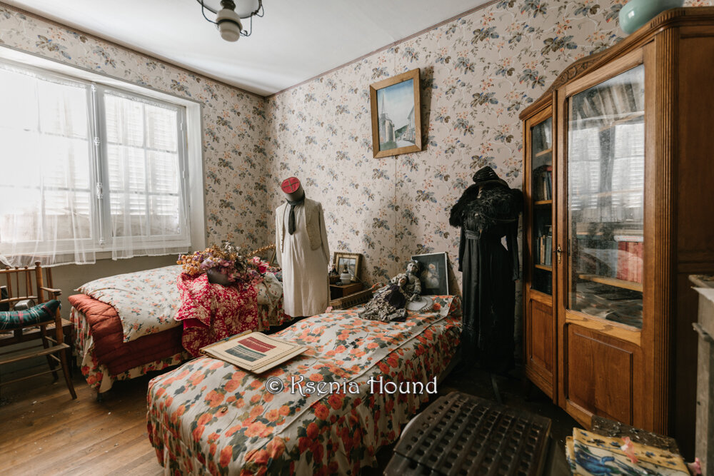 Старая калитка тихонько скрипнула и впустила нас в заросший ежевикой сад заднего двора. Никакой ни обычной, ни народной тропы здесь уже и следа не было - растительность полноправно вступила в свои права. Приходилось пробираться через неё, шипя на колючие кусты, так и норовившие оставить в теле как можно больше колючек. Дверь в дом была открыта: затхлый запах закрытого помещения и плесени поприветствовал нас с порога. Горы наваленных повсюду вещей захламляли пространство и затрудняли передвижение - скорее всего, так было и при жизни хозяйки, их просто не куда было складывать. Несмотря на долгую заброшенность, дом хорошо сохранился: плесень хоть и была, но больше на нижних этажах, где располагался подвал и другие хозяйственные помещения. Спустившись туда, мы потревожили летучую мышку, мирно спавшую на потолке. Два верхних этажа, связанные изогнутой деревянной лестницей, состояли из большой гостиной, миниатюрной кухни и множества компактных спаленок, в которые не по размеру была втиснута
