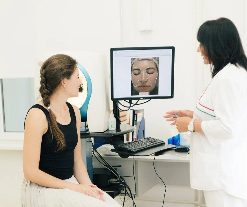 📍 Предлагаем обратить внимание на диагностику кожи на современном оборудовании Visia. Диагностика VISIA начинается с того, что ваше лицо фотографируется в различных режимах. Сначала делается обычный снимок, потом снимок в инфракрасном свете и третий – в ультрафиолетовом свете. Эти снимки сравниваются с базой данных для того чтобы выявить все отклонения от нормы и понять, какие проблемы требуют особого