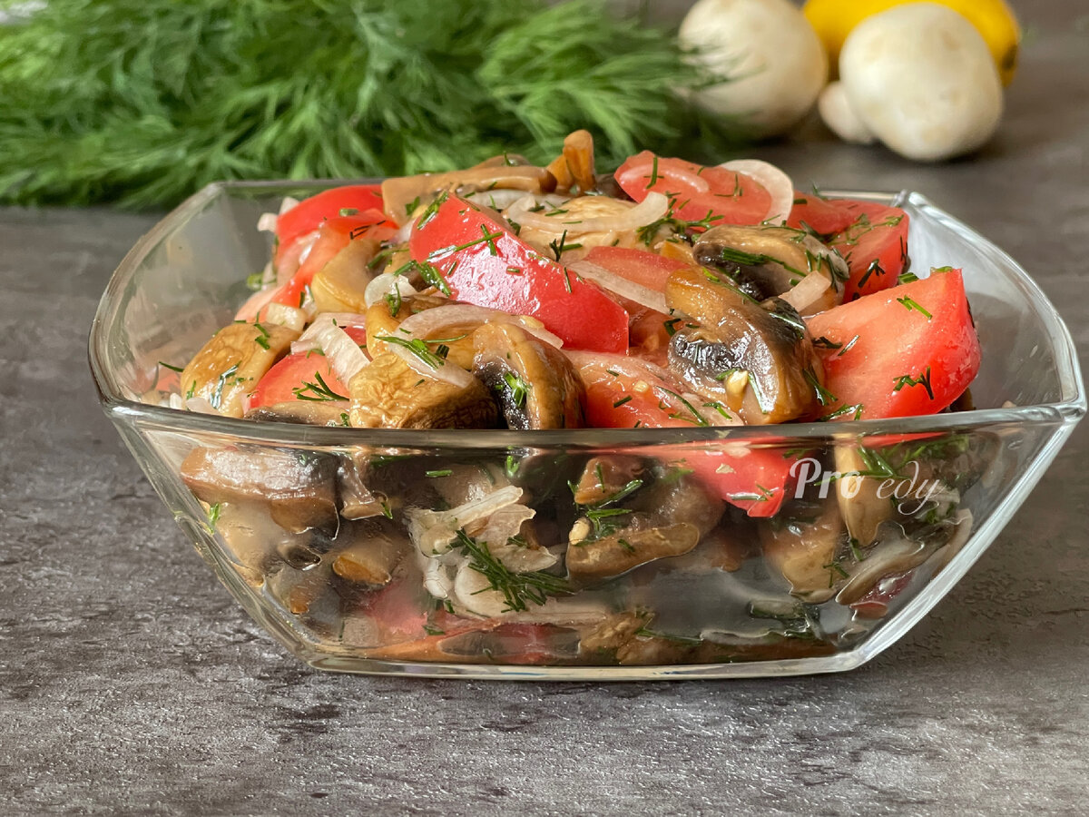 Салат желательно готовить непосредственно перед подачей, так как помидоры пускают сок. Но на вкус это конечно не влияет)