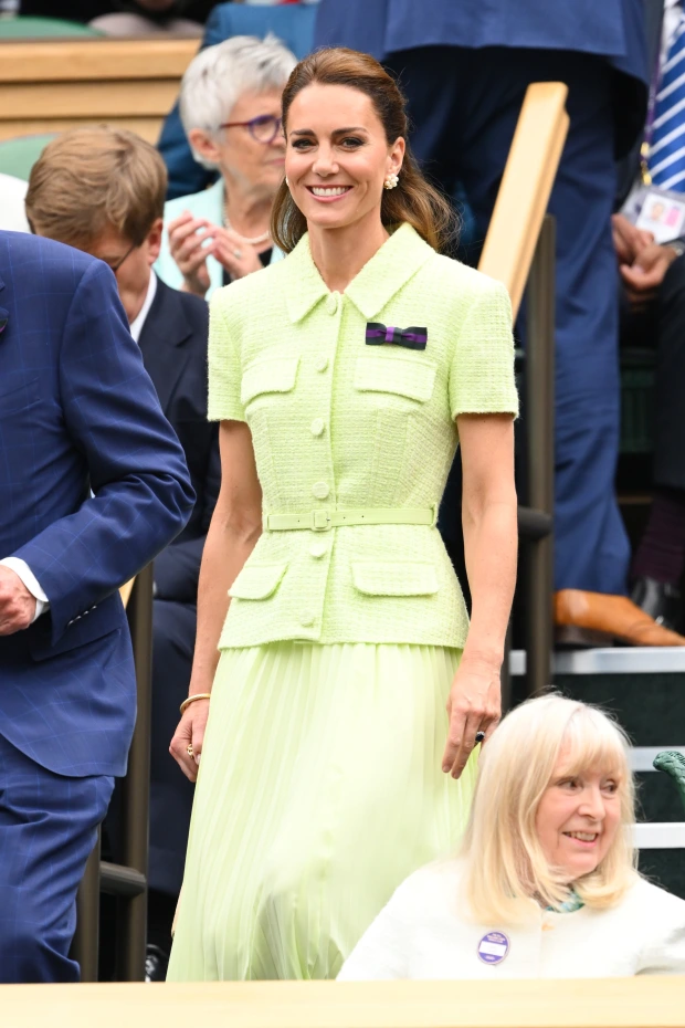У Кейт Миддлтон много стильных находок. Сегодняшний костюм, в котором она наблюдала драматический финал женских соревнований в рамках Уимблдонского турнира, одна из таких вещей. Костюм из жакета и юбки от Self Portrait стоит 420 фунтов стерлингов. Твидовый жакет с коротким рукавом и поясом светлого оттенка цвета зеленого лайма сшит в стиле "Сафари". Знаковые детали стиля - застежка на пуговицы, отложной воротник, карманы, сверху закрытые клапаном с пуговицей. Цвет зеленого лайма красиво оттеняет загорелую кожу Кейт. На этом снимке хорошо видно, как скроена юбка из очень тонкой прозрачной ткани с плиссировкой. Юбка на подкладке такого же цвета из более плотной ткани. Кому из архетипов может понравиться этот костюм? А Вам костюм понравился? Напишите, что о нем думаете, попробуем с его помощью определить архетип" Подпишитесь на новости канала и поддержите статью лайком!