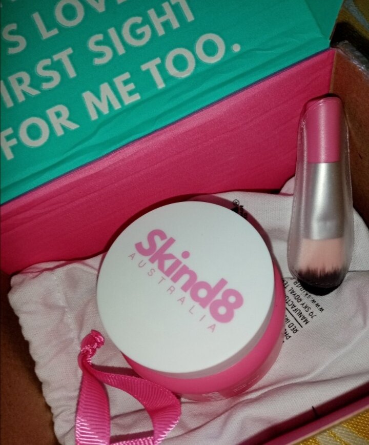 You're Welcom. Я давно искала для себя хорошую очищающую глиняную маску, потому что многие которые я покупала, просто ни делали "ничего" от слова совсем. И вот однажды в интернете я наткнулась на "маску для лица Skind8 из розовой глины" от австралийского бренда, и почитав отзывы я все таки решила ее заказать....но меня очень смущало одно...ее цена... Краткая характеристика: Бренд: Skind8. Производитель: Australian Beauty Company PTY LDT. Страна производителя: Австралия. Масса: 60 гр. Цена: от 1800 руб. Срок годности: 36 месяцев. Где купить: WB. Органолептические показатели: Внешний вид - невероятно милый дизайн. Маска находится в миниатюрной пластмассовой баночке розового цвета, с закручивающейся белой крышечкой, на которой нанесен логотип бренда. У баночки имеется защитная мембрана из пластиковой крышечки. В комплекте с маской идет очень милая, малюсенькая кисточка из хорошего плотного ворса, который не осыпается в защитном футляре и тканевый белый мешочек в которой была маска с ки