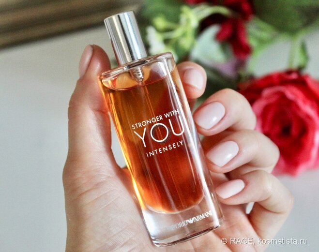 Добрый день! В этот аромат я без памяти влюбилась 4,5 года назад, и с тех прошла все стадии знакомства — миниатюра, пробник, полноразмер, тревел-сайз. Именно этот вариант Emporio Armani Stronger With YOU Intensely в настоящее время живет на моей парфюмерной полочке, и сегодня я с огромным удовольствием расскажу об одном из моих самых любимых ароматов. Коротко о главном. Emporio Armani Stronger With YOU Intensely – наверное, самый вкусный и сладкий фланкер линейки Stronger with YOU. Аромат выпущен в 2019 году, заявлен как мужской и относится к группе восточные фужерные. Произведен во Франции, срок годности составляет 24 месяца после вскрытия упаковки. В продаже представлен в единственной концентрации (EDP) и в трех объемах – 30, 50 и 100 мл. У меня тревел объемом 15 мл (раньше такие флакончики часто давали в подарок за покупку на сайте Армани). Полноразмерный флакон выполнен из толстого стекла с тяжелой металлической крышкой. Красиво и строго, с точки зрения дизайна Stronger With YOU In