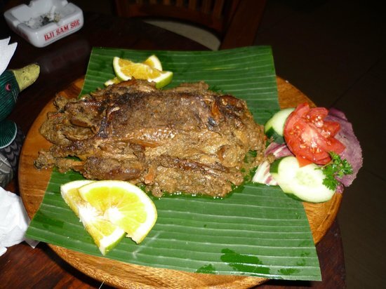 Бебек туту, или "Bebek Tutu", - это традиционное блюдо из индонезийской кухни, которое представляет собой жареную утку, приготовленную с использованием различных специй и трав. Вот рецепт: