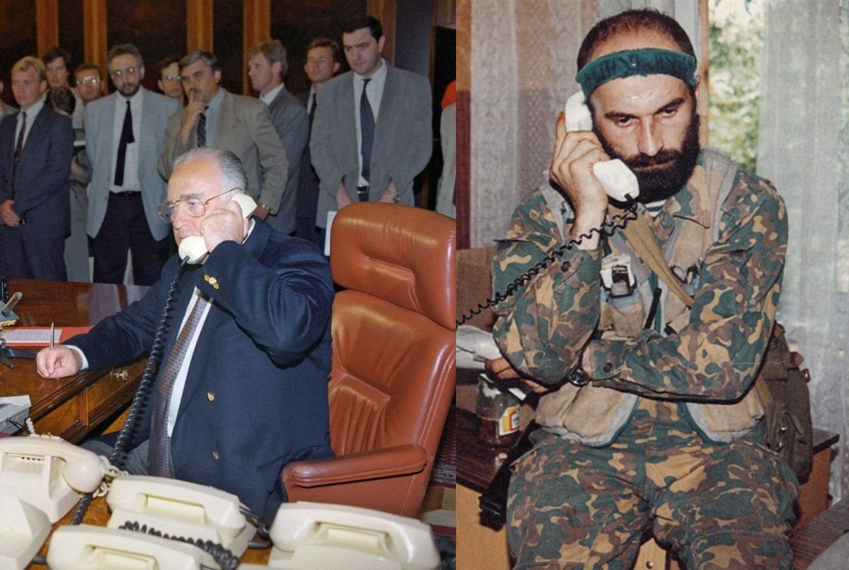 Чуть позже этот знаменитый момент обыграют в знаменитой сатирической программе "Куклы" на НТВ -Черномырдин звонит Басаеву из перевернутой телефонной будки...
