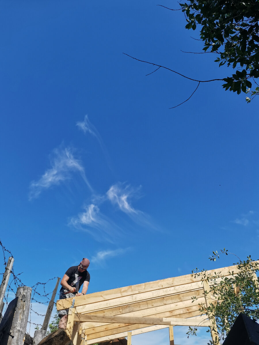 Ну а Иван, в то время как я всё это делала, занимался стройкой. Можно сказать, что это финишная прямая, каркас почти собран, ОСБ и профлист заказаны, завтра будет зашивать.