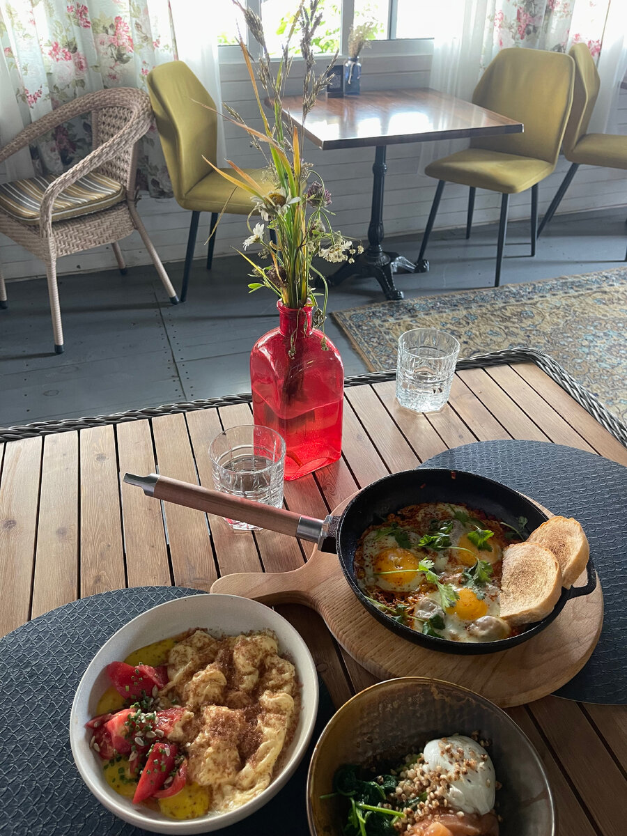 Третий завтрак фестиваля, который я попробовала, был в гастробаре Белок (58). Подробнее о фестивале в посте от 2 июля Фестивальный завтрак здесь представлен 8 позициями. Это согласно описанию : Блюдо +напиток К каждому блюду на выбор напитки: * американо * латте * латте лемонграсс *ореховый раф *матча латте на кокосовом молоке Мои впечатления от блюд: 2.Бриошь с авакадо, лососем и яйцом пашот - классическое вкусное добротное блюдо , с идеальной подачей. 3.Зелёная гречка с лососем, яйцом пашот и шпинатом - замечательное полезное блюдо для завтрака. Гречка слегка жестковата на мой вкус. 4.Шакшука с моцареллой- роскошная подача на огромной горячей сковородке, с идеальным ремесленным пористым хлебом, которым можно с удовольствием макать в желток. 5.Скрембэл со свежим томатом и пармезаном из оленя - идеально сбалансированное и гармоничное блюдо изысканно оттенённое вкусными томатами и крошкой пармезана из оленя. 6.Сырники с кедровым орехом и сметаной - классическое полноце