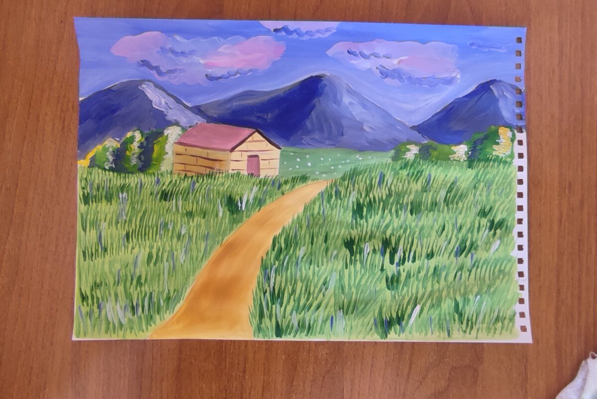 Было много домиков у моря, а тут решила, что домик в горах тоже хочется иметь!) Поэтому рисуем!
