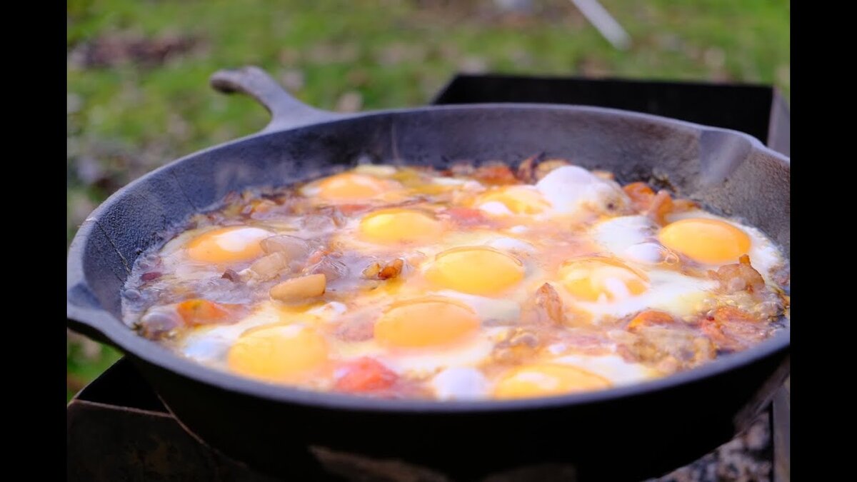 7. Продолжайте готовить яичницу на костре, помешивая время от времени, пока яйца не свернутся и станут готовыми.