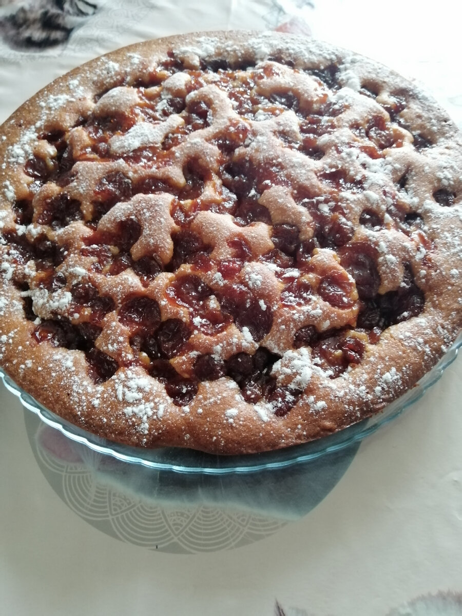 Возьмём: *2 яйца; *1 стакан сахара; *1/2 чайной ложки ванильного сахара; *1/2 стакана растительного масла; *1 стакан молока; *1,5 стакана муки; *1/2 чайной ложки соли; *1 чайная ложка разрыхлителя; *Свежие фрукты 200-300 грамм; *Сазарная пудра для украшения. Взбиваем до растворения сахара яйца, сахар и ванильный сахар. Выливаем в эту смесь молоко и перемешиваем. Добавляем растительное масло, перемешиваем. Затем аккуратно вводим просеянную муку с разрыхлителем и соль. Смешиваем. Выливаем тесто в форму, сверху выкладываем свежие фрукты. У меня вишня. Выпекаем при 180 градусах примерно 45 минут. Остывший пирог посыпаем сахарной пудрой. Просто и вкусно!
