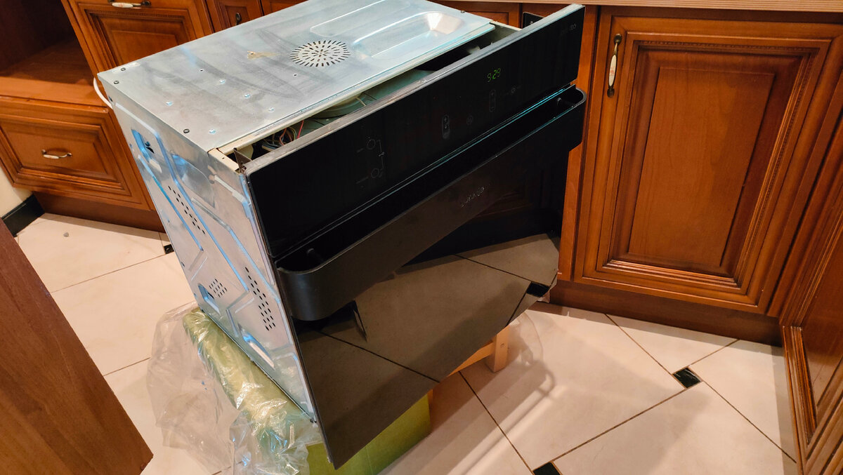 В ремонте вот такой духовой шкаф с жалобой на посторонний запах. Сначала я подумал что причиной постороннего запаха стало выгорание остатков химии после чистки, но после включения, через несколько секунд появился отчётливый запах горелой проводки. Ну что ж, давайте искать Первое с чего стоит начать в такой ситуации это проверить клеммную коробку, частенько проблема бывает именно там. Открыв крышку клеммной коробки, я ничего не увидел. Далее я приступил к разборке духового шкафа в поисках источника запаха. Проверил все разъёмы и соединения на силовом модуле. Всё в норме. Проблема оказалась всё же в клеммнике, просто снаружи этого не было видно. Всё стало ясно после снятия задней крышки. Разъём приплавился к корпусу. Пришлось откусить провода и припаять новые. Клеммная коробка, естественно, под замену. Всё подключил, собрал. Проверили работу духовки в течение 15 минут. Всё в норме, запахов нет.
