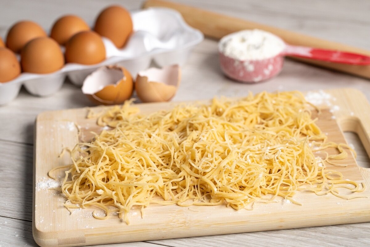 - После нарезки лапши, разложите ее на чистой поверхности и оставьте сушиться в течение 15-20 минут.