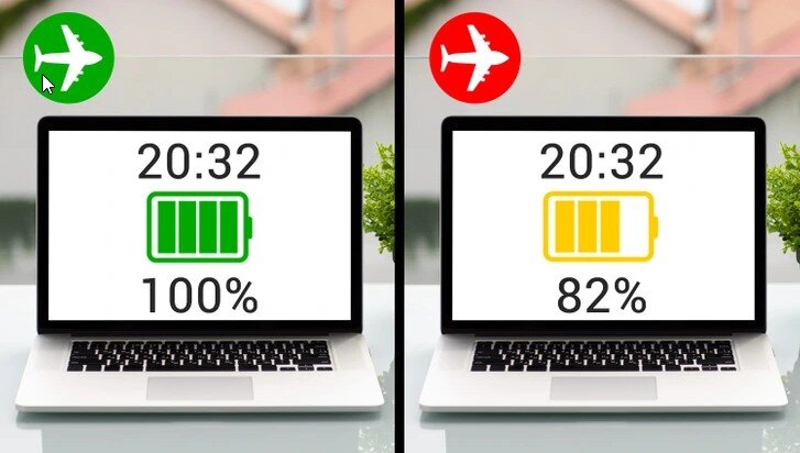 Аккумулятор ноутбука и телефона заряжается быстрее в режиме полета.