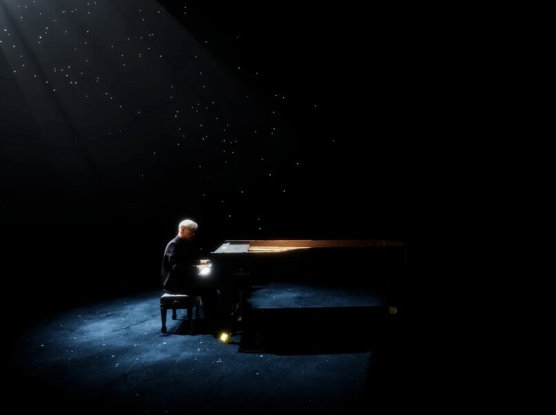 Выступление длится около 45 минут. Композитор, что выиграл Оскар, играет 10 своих собственных произведений, и после каждой композиции люди аплодируют. Сакамото не кланяется и не уходит со сцены; он ушел из жизни в марте этого года после продолжительной борьбы с раком. Он просто растворяется во тьме, когда посетитель снимает надетые на себя наушники.
