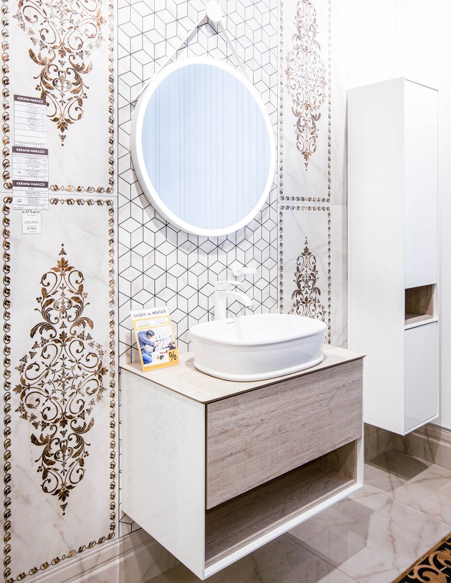 Здесь вы узнаете, что можно соединить в таком интерьере. Увидите на примерах. Показываем готовые дизайны в интерьерных кабинах наших фирменных магазинов KERAMA MARAZZI в Москве и области. Некоторые из них новинки, но уже входят в топ-5 среди фаворитов дизайнеров и наших клиентов.