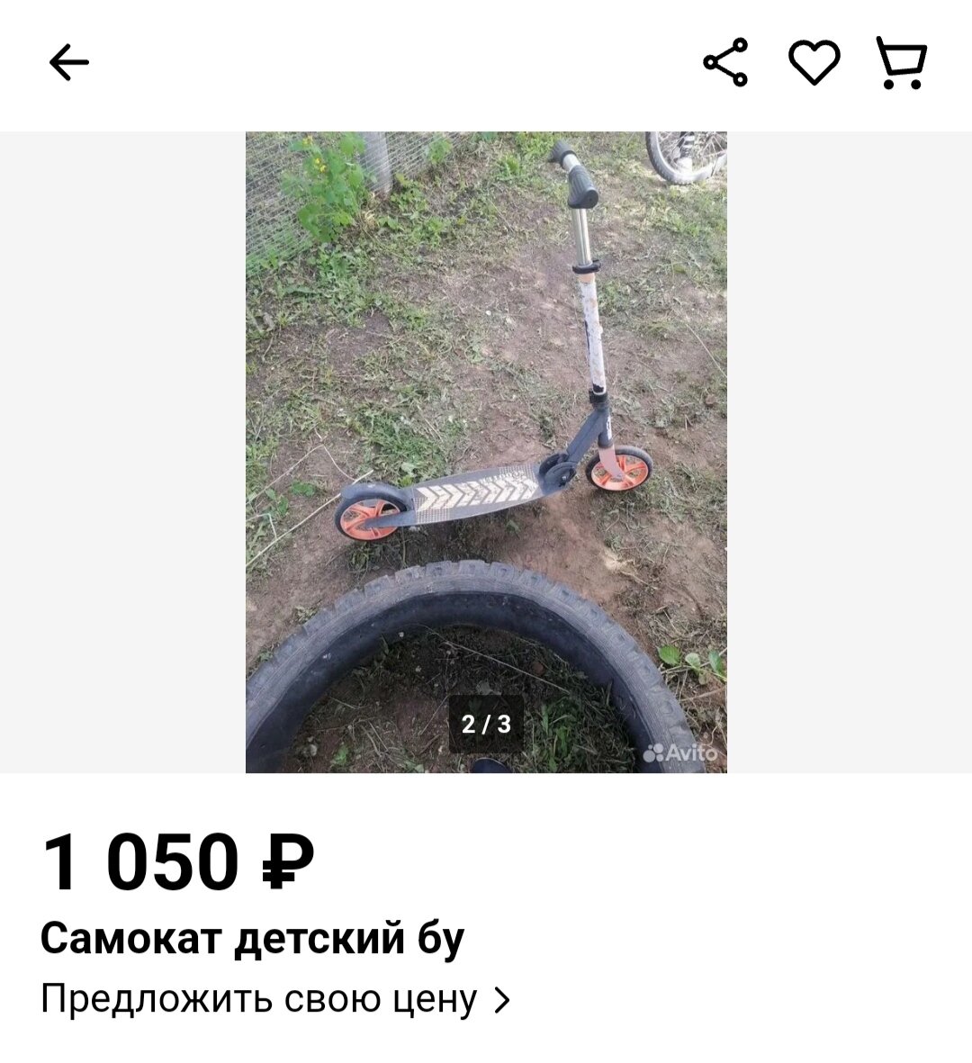 Началось всё, конечно же, с того, что спали наконец-то почти до обеда). На завтрак, слава богу, оставалась со вчерашнего каша и ещё малина, детей было чем покормить. И стала я звонить по объявлениям на авито. Вот самокат, который я ей присмотрела