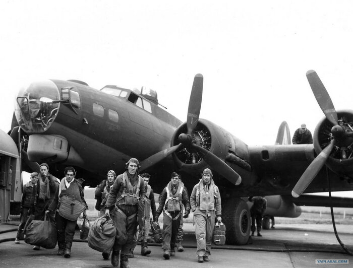 ...но даже россиянам, которые не знают этих имён, хорошо известна одна из песен Джимми, написанная по следам реального события. 26 февраля 1943 года эскадрилья американских бомбардировщиков B-17 Flying Fortress ("летающая крепость") отправилась из Англии бомбить объекты в континентальной Европе. Ночной полёт над вражеской территорией проходил в режиме радиомолчания. К назначенному времени, выполнив боевую задачу, экипажи снова вышли на связь — все, кроме одного. На земле уже потеряли надежду, когда в эфире послышался голос командира пропавшего бомбардировщика Хью Эшкрафта. "Ковыляем домой", — сообщил он. Цели удалось поразить, но шквальным зенитным огнём гитлеровцы превратили обшивку "летающей крепости" в лохмотья и вывели из стр