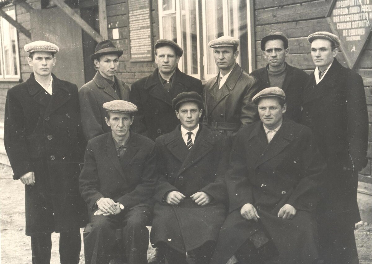 1-й ряд - Д. И. ДАЙНАКОВ, В. В. ХОМЕНЯ, В. В. ЛАВРИНОВИЧ, 2 - й ряд - А. П. КАБАНЧУК, Ю. С. ВЕСЕЛОВ, В. К. ЦАЛКО, А. С. ПЕТРОВ, ?, В. П. МАЛЫЙ (слева - направо)