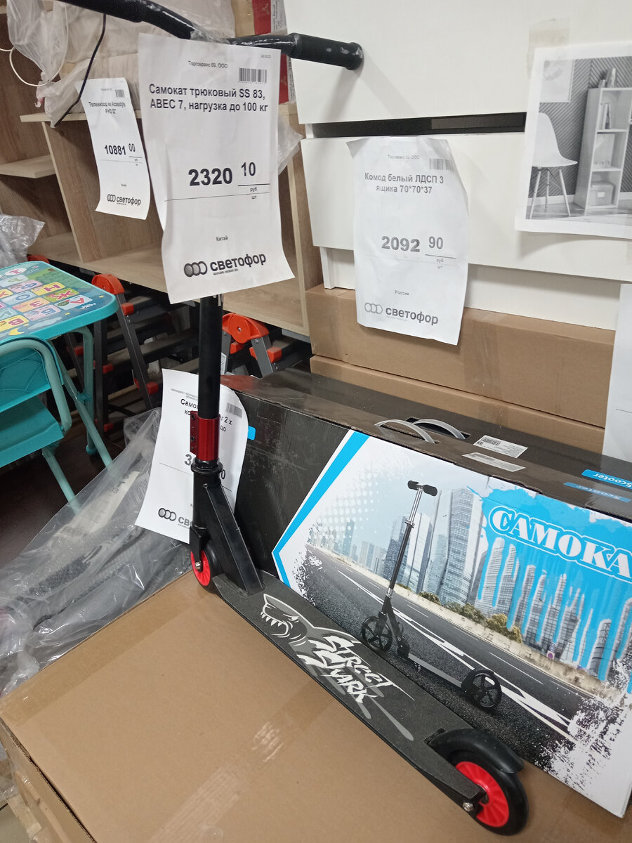 Добрый день всем! Сегодня идём с вами в магазин "Светофор", выбирать нужные товары. Самокат трюковый АВЕС Цена: 2320,10. Дрель ударная сетевая, мощность 500 Вт. Цена: 1314,50. Портативная минимойка высокого давления, мощность 250 Вт. Цена: 2564,60. Электрическая духовка Delta, 33л. Цена: 3748,70. Стол складной туристический. Цена: 836,60. Коврик самонадувающийся с подушкой, 180 * 59 см. Цена: 1223,70. Военный тягач "Щит" с танком, 56,3 * 21,8 * 1 см. Цена: 1071,30. Игрушка интерактивная "Умный питомец", звук, свет, движение. Цена: 324,20. Мыло туалетное Pure by Duru, 4 * 85 гр. Цена: 57,70. Зубная паста "Новый жемчуг" с фтором, 100 мл. Цена: 33,20 Шампунь "Марья краса" для всех типов волос "клюква и можжевельник", "облепиха и чабрец", 750 мл. Цена: 74,90. Шампунь "Сто рецептов красоты" для всех типов волос, 400 мл. Цена: 96,60. Чёрное мыло для бани, 500 мл. Цена: 102,20. Чистящее средство для кухни Colorit против жира и копоти, 600 мл. Цена: 74,50. Концентрированный густой гель Domp