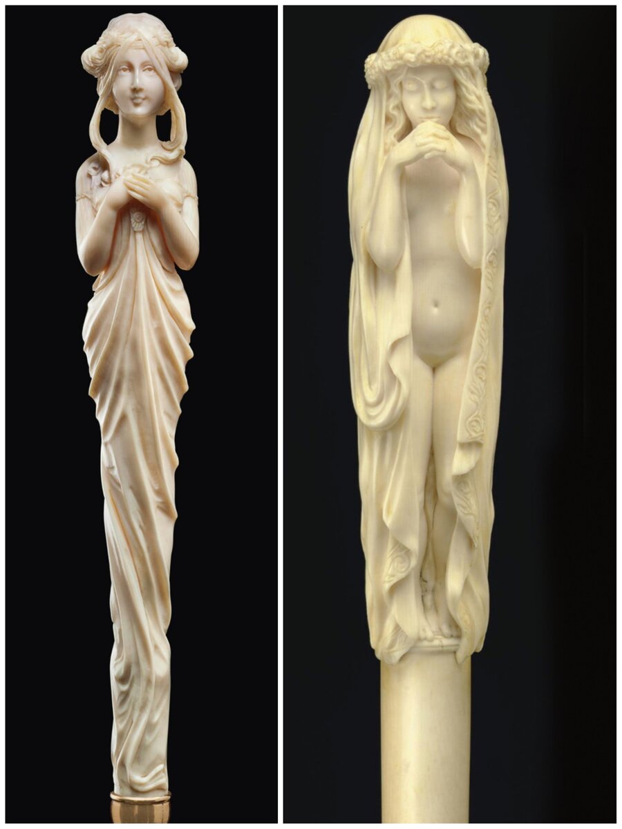 Сейчас уже не увидишь этот предмет в руках мужчин, а когда-то без него не мог обойтись настоящий джентльмен! Сегодня мы рассмотрим еще одно направление резьбы по кости — рукоятки старинных тростей с аукциона Christie's. Рукоятка трости — по сути миниатюрная скульптура, к которой, однако, предъявляются жесткие утилитарные требования. Во-первых, она должна быть прочной, без хрупких деталей, во-вторых, иметь удобную плоскость для захвата рукой в верхней части, соответствующую анатомии ладони. Это жесткие рамки, поэтому большинство тростей все же имеют простую гладкую форму, ведь для повседневного использования важна практичность. Слоновая кость или (в современной резьбе по кости) бивень мамонта необычайно приятно лежит в руке — все же это органический и теплый материал. Но в музеях и на аукционах попадаются трости-произведения искусства, которые носили лишь в особых случаях или предназначавшиеся только для коллекций, о чем говорит их отличная сохранность и ювелирное качество резьбы. Т
