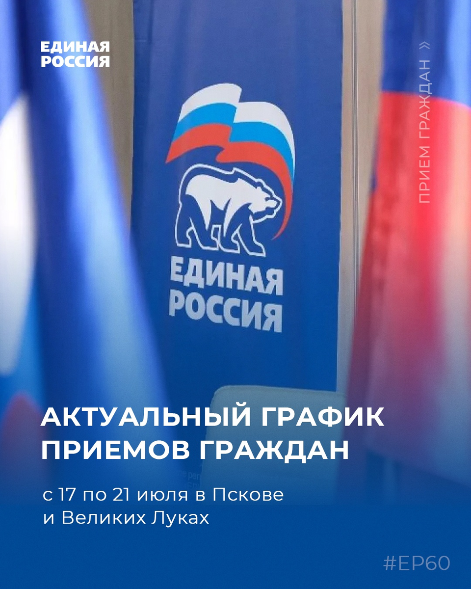 Актуальный график приемов граждан в псковской региональной общественной приёмной партии с 17 по 21 июля Записаться на прием к депутатам можно по телефонам: 8 (8112) 66-25-12 - в Пскове