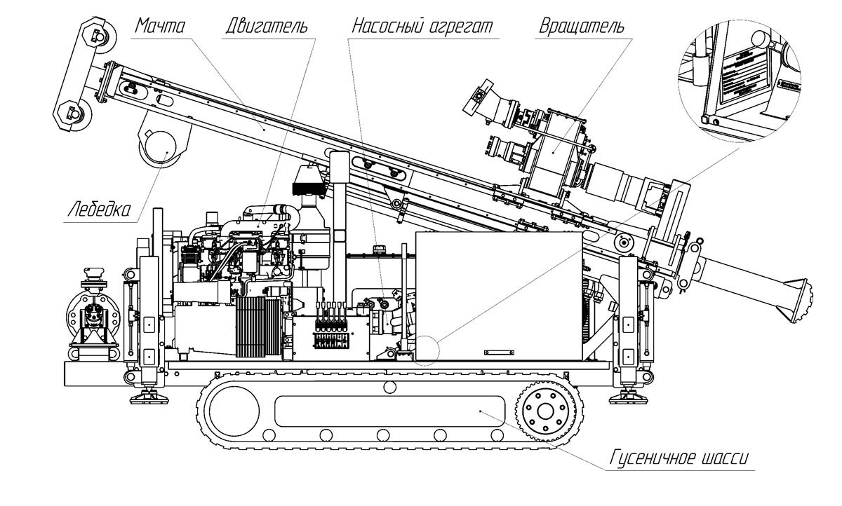 Стандартные буровые установки для бурения скважин на воду состоят из следующих основных элементов: