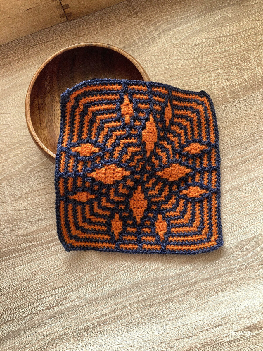 Квадратный мотив "Каскад" для мозаичного пледа крючком