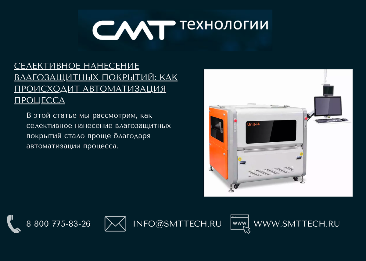 В каталоге компании «СМТ Технологии» вы можете найти оборудование и материалы для автоматической селективной влагозащиты печатных плат. Наша продукция выпускается ведущими производителями промышленной техники, поэтому мы гарантируем высокий результат при его эксплуатации. Заказать у нас оборудование, комплектующие и расходники вы можете по телефону 8 499 322 20 25.