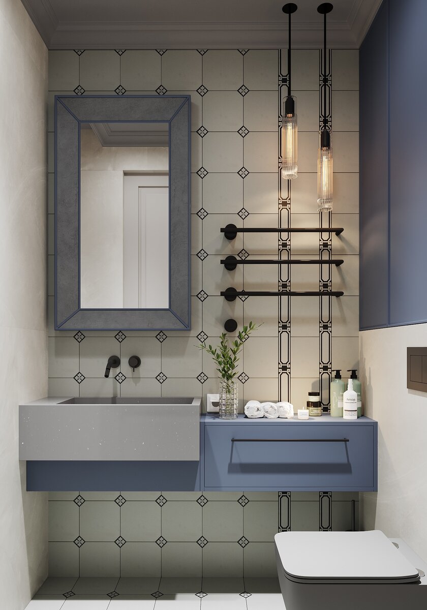 В проектах дизайн-бюро Art Concept достаточно часто мы изготавливаем раковину в ванную на заказ. Для этого обычно есть две основные причины: нужны определенные размеры раковины или нужен определенный материал и цвет. Раковина может быть больше или меньше стандартной в зависимости от цели – обеспечить удобство в небольшой ванной, либо более комфортное пользование, исходя из пожеланий клиента. В интерьере небольшой ванной в трехкомнатной квартире раковина выполнена на заказ из акрилового камня для более удобного пользования помещением. Так как во всех дизайн-проектах квартир и домов мы стремимся сохранить единый стиль, то раковина, изготовленная по эскизам, из нужного материала и правильного оттенка, подчеркивает общую целостность. В квартире в ВТБ Арена Парк раковина изготовлена по индивидуальным эскизам Алены Чмелевой, руководителя бюро. Она сделана из бетона и собрана из четырех сегментов. Изготовление такой раковины из камня было достаточно дорогим, а тонировать бетон в синий цвет п