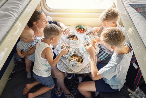 Дорога в поезде дальнего следования иногда занимает несколько дней, поэтому важно взять с собой продукты с долгим сроком хранения без холодильника, а питание при этом должно быть вкусным и правильным, рассказала в беседе с Пятым каналом диетолог Елена Соломатина. По ее словам, выбирать лучше продукты с низким содержанием жидкости — такая еда меньше портится. Как рассказала специалист, не стоит брать в дорогу продукты из фарша и салаты, запеченное мясо и вареные яйца, а если это все-таки произошло, их надо съесть в первую очередь. Более сухие закуски лучше оставить на второй день поездки. Упаковывать продукты необходимо в контейнер или в пергамент. Целлофан не рекомендуется, так как образующийся в пакете конденсат ускоряет процесс порчи. В качестве гарнира подойдут пюре или вермишель быстрого приготовления, а также консервированные бобовые, продолжила врач. В дороге легко заварить кашу на воде, для вкуса можно добавить сушеные ягоды или потолочь банан. Из мясных изделий диетолог пореком