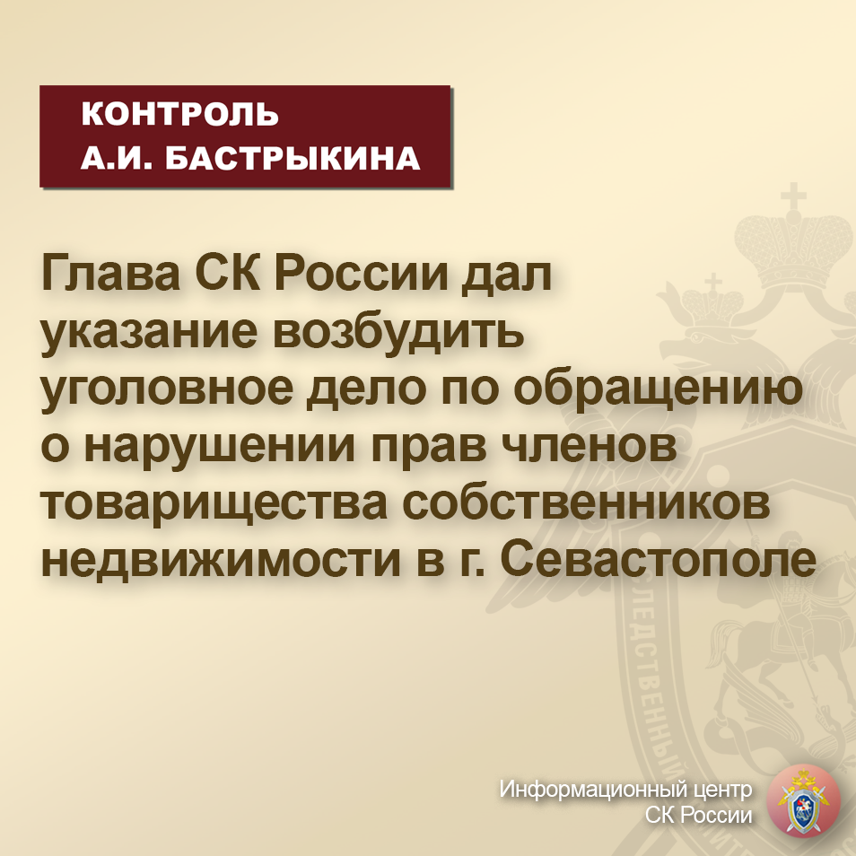 Председатель Следственного комитета Российской Федерации Александр Иванович Бастрыкин дал указание руководителю ГСУ СК России по Республике Крым и городу Севастополю Владимиру Николаевичу Терентьеву возбудить уголовное дело и представить доклад о предварительных и окончательных результатах его расследования.